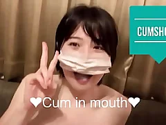 Japanese brunette beauty. Slender clumsy wife, threesome blowjob with an increment of shaved pussy creampie sex. Uncensored, Asian, hentai